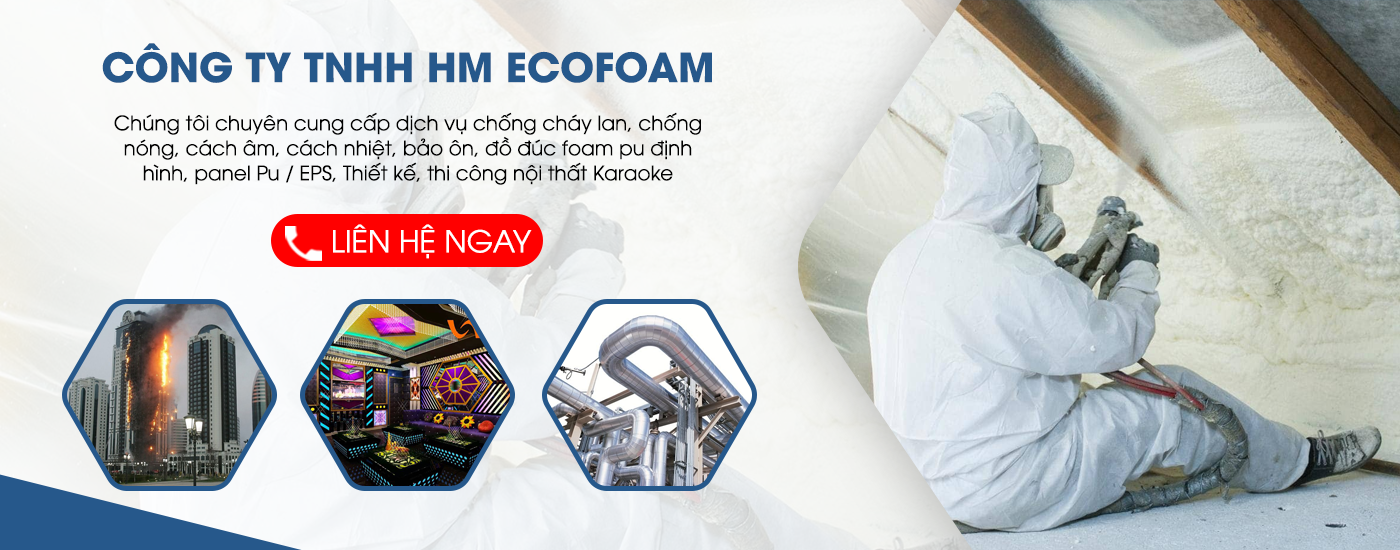 Công Ty TNHH HM Ecofoam cung cấp đa dạng các giải pháp chuyên nghiệp về chống cháy lan, chống nóng và cách âm cho nhiều loại công trình khác nhau. Chúng tôi chuyên chống cháy lan cho nhà cao tầng, chống nóng cho các công trình dân dụng, đảm bảo môi trường sống thoải mái. Đồng thời, chúng tôi cũng cung cấp dịch vụ cách âm hiệu quả cho hội trường, phòng karaoke, và quán bar. Ngoài ra, HM Ecofoam còn cung cấp cách nhiệt, bảo ôn công nghiệp, sản xuất đồ đúc foam PU định hình và panel PU/EPS chất lượng cao cho phòng sạch và kho lạnh, đáp ứng các yêu cầu khắt khe về kỹ thuật.